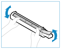 Разклатете новата тонер касета 5-6 пъти, както е показано по-долу, за да разпределите тонера равномерно в касетата.