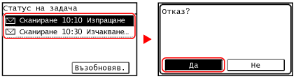 Ако се покаже екранът със списък на задачите, изберете задачата, която да отмените, и натиснете [Да].