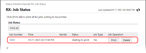 В [RX] щракнете върху [Job Status].