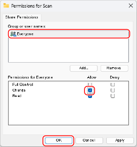 Potvrdite okvir [Zajednički koristi ovu mapu] i kliknite [Dozvole].