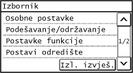 Promjena prikaza na zaslonuMožete promijeniti prikaz upravljačke ploče tako da promijenite jezik i jedinice prikaza, a možete i prikazivati i sakrivati poruke. [Postavke pokazivača]