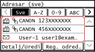 Pri navođenju odredišta pozivanjem adresara sa zaslona [Početni zaslon] ili zaslona za skeniranje ili faksiranje, upotrijebite popis odredišta.