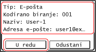 Provjerite je li odredište točno pa pritisnite [U redu].