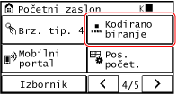 Na upravljačkoj ploči pritisnite [Kodirano biranje] na zaslonu [Početni zaslon].