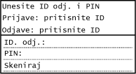 Kad je postavljen ID administratora, zaslon za prijavu prikazuje se za postupke za koje su potrebne administratorske ovlasti. Unesite ID i PIN administratora da biste se prijavili.