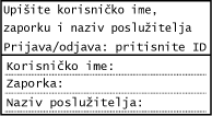 Kada je postavljeno slanje s provjerom autentičnosti (provjera autentičnosti LDAP poslužitelja), prilikom skeniranja i faksiranja prikazat će se zaslon za prijavu putem slanja s provjerom autentičnosti. Za prijavu upišite korisničko ime i lozinku kojima se upravlja putem LDAP poslužitelja.