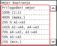 Ponavljajte taj proces dok ne završite sa skeniranjem svih izvornika. Možete pritisnuti [Gustoća] i [Tip originala] da biste promijenili postavke za svaki izvornik. Ovisno o navedenim postavkama kopiranja moguće je da [Tip originala] nije moguće promijeniti.