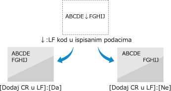 Ako je odabrano [Ne], položaj ispisa premješta se u sljedeći redak, neposredno ispod primljene šifre za prijelaz u sljedeći redak.