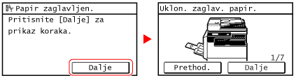 Nakon uklanjanja svih zaglavljenih papiraOdmah izvucite ruke iz uređaja i dodatne opreme da vam valjci ne bi zahvatili odjeću ili ruke.