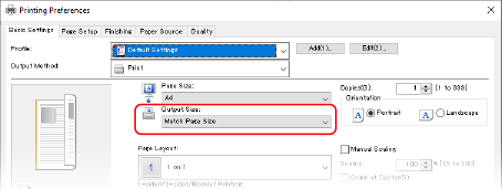 Podesite [Izlazni format] u upravljačkom programu pisača tako da se podudara s papirom na koji se ispisuje.