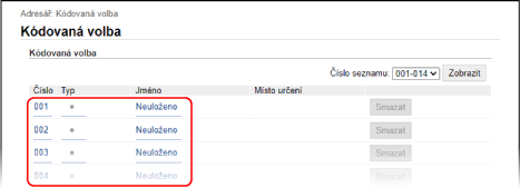 Úprava nebo odstranění uložených míst určeníPokud v Kroku 4 vyberete místo určení a kliknete na tlačítko [Editovat] na obrazovce, můžete upravit uložené informace.