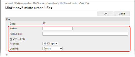 Pokud při odesílání faxu na mezinárodní číslo dojde k chybě komunikace, vyberte položku [Mezinárodní (1)]. Jestliže se chyba nevylepší, vyberte položku [Mezinárodní (2)] a [Mezinárodní (3)] v tomto pořadí.