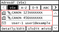 Při zadávání míst určení vyvoláním adresáře z obrazovky [Domů] nebo obrazovky skenování či faxu použijte seznam míst určení.