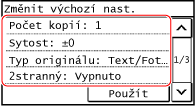 [Změnit výchozí nastavení]
