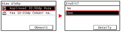 Pokud se zobrazí obrazovka se seznamem úloh, vyberte úlohu, kterou chcete zrušit, a stiskněte tlačítko [Ano].
