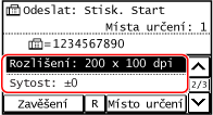 Zadejte číslo faxu pomocí numerických kláves nebo vyberte místo určení uložené v adresáři stisknutím tlačítka [Místo určení].
