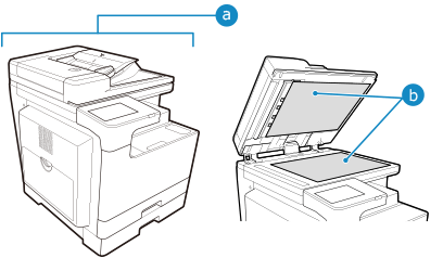 Pokud se originál nebo papír zašpiní nebo se zhorší kvalita tisku, podle příznaků vyčistěte části, které způsobují problém.