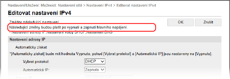 V závislosti na položce může být nezbytné restartovat zařízení, aby se nastavení použila. Pokud je nutný restart, zobrazí se v horní části obrazovky zpráva.