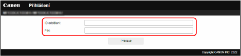 Zadejte ID oddělení a kód PIN.