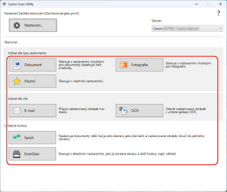 Konkrétní aplikace (MF Scan Utility)