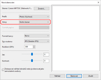 Pro zobrazení náhledu skenovaných dat klikněte na možnost [Náhled].