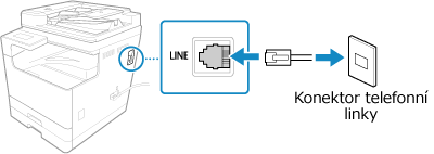 Zapojte dodaný telefonní kabel do konektoru telefonní linky (LINE) na zařízení a do konektoru telefonní linky ve zdi.