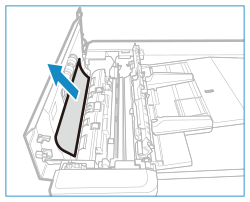 Pokud se originál zachytil, opatrně jej vytáhněte ve směru šipky.