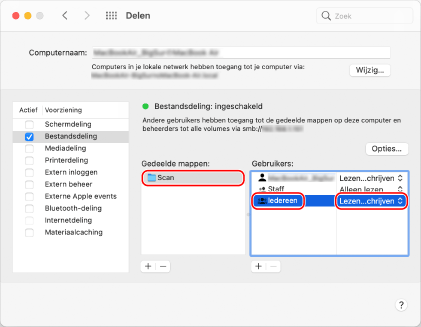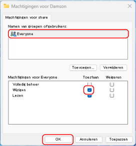 In [Gebruikers] selecteert u [Iedereen]  [Lezen en schrijven].