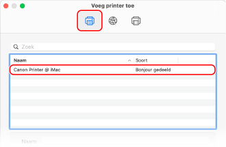 In [Netwerk] selecteert u de afdrukserver om de gedeelde printer weer te geven.