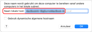 De in [Computernaam] weergegeven naam op het scherm [Delen] kunt u misschien niet gebruiken op het netwerk. Met behulp van de volgende procedure bekijkt u de op het netwerk gebruikte computernaam.