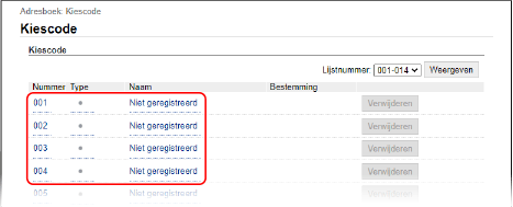 In stap 4 klikt u op [Verwijderen] rechts naast de bestemming die u wilt verwijderen, waarop deze wordt verwijderd.