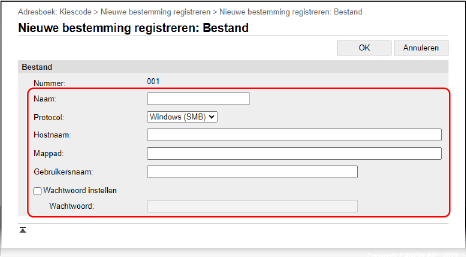 Als u een gedeelde map als bestemming registreert, bereid dan de volgende informatie voor en houd deze bij de hand: