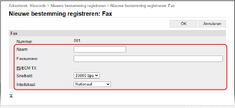 Als ER een verzendfout optreedt of als het lang duurt om een fax naar een geregistreerd faxnummer te verzenden, stel dan de faxverzenddetails in.