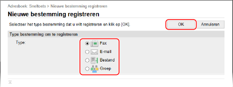 Geregistreerde bestemmingen bewerken of verwijderenAls u een bestemming selecteert en in stap 4 op het scherm op [Bewerken] klikt, kunt u de geregistreerde gegevens bewerken.