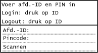 Als het Beheer afdelings-id is ingesteld, verschijnt het volgende inlogscherm. Voer de afdelings-ID in om u aan te melden. Als er een pincode is ingesteld, voert u deze in.
