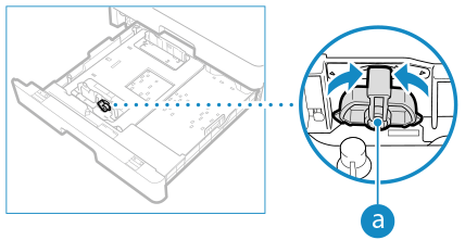 Druk op het bovenste gedeelte van de rechtergeleider en verschuif hem zodat deze op één lijn is met de formaatindicator voor het te plaatsen papier.