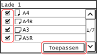 Schakel de selectievakjes van de te verbergen papierformaten uit en druk op [Toepassen].