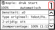 Herhaal dit proces totdat het scannen van alle originelen is voltooid. U kunt op [Densiteit] en [Type origineel] drukken om de instellingen voor elk origineel te wijzigen. Afhankelijk van de opgegeven kopieerinstellingen kan [Type origineel] niet worden gewijzigd.