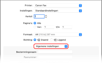In [Printer] selecteert u het faxstuurprogramma van het apparaat.