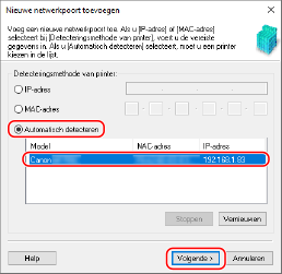 Selecteer [Automatische detecteren] en het apparaat en klik op [Volgende].