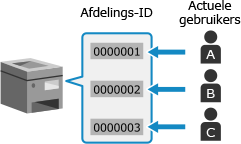 Beheer afdelings-ID is een functie voor het beheren van gebruikers en groepen door een afdelings-ID aan elke gebruiker of groep toe te wijzen.