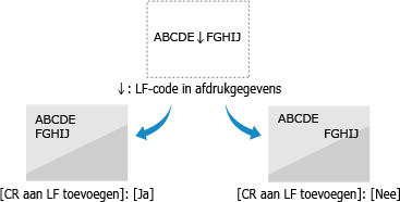 Als [Nee] is geselecteerd, wordt de afdrukpositie naar de volgende regel verplaatst, net onder de ontvangen LF-code.