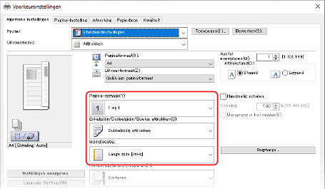 [Paginavolgorde] [Enkelzijdig/Dubbelzijdig/Boekje afdrukken] [Inbindlocatie] in.