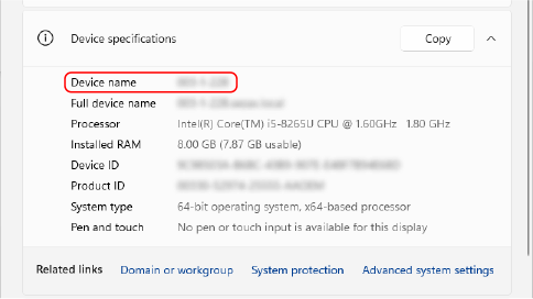 Arvuti nimi kuvatakse jaotises [Seadme nimi].