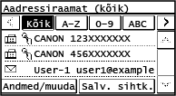 Te saate määrata aadressiraamatus registreeritud sihtkohti, kui kuvate aadressiraamatu kuvalt [Avamenüü] või juhtpaneelil skannimise või faksimise kuval.