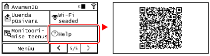 ] menüü [Avamenüü] ekraanidel, kuvatakse QR-kood.
