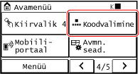 Vajutage juhtpaneelil [Koodvalim.] kuval [Avamenüü].