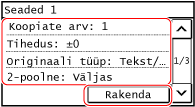 Kopeerimise sätted täidetakse, et saaksite kopeerida vaid juhtpaneelil