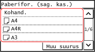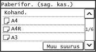 Kui registreeritakse sageli kasutatavad mittestandardsed paberiformaadid, kuvatakse paberiformaadina registreeritud formaat. Mittestandardse (kohandatud) formaadiga paberi registreerimine