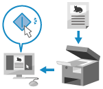 See on otstarbekas skannitud paberdokumendi andmete jagamiseks võrgus. Ettevalmistused skannitud andmete salvestamiseks ühiskausta Skannimine (ühiskausta salvestamine) |